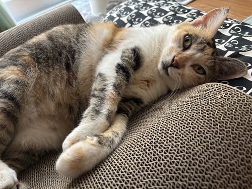 新しい爪とぎを購入。 古いのは両面使えるってことで、カーブがついてる方がボロボロになったので、平な裏面にしたら、ちっとも爪とぎをしなくなったKIRIちゃん それで、新しい爪とぎを購入。 猫壱というブランドのLサイズにした。 http://バリバリベッド®…