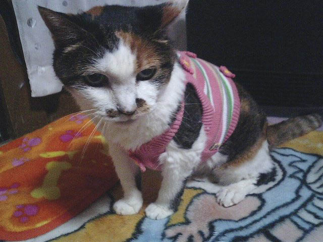 寝ているだけの時間が長くなり、ぐったりしているので、つだ動物病院で診てもらうことにした。オートバイの後ろに乗せていくのは憚られたので、タクシーを呼んだ。